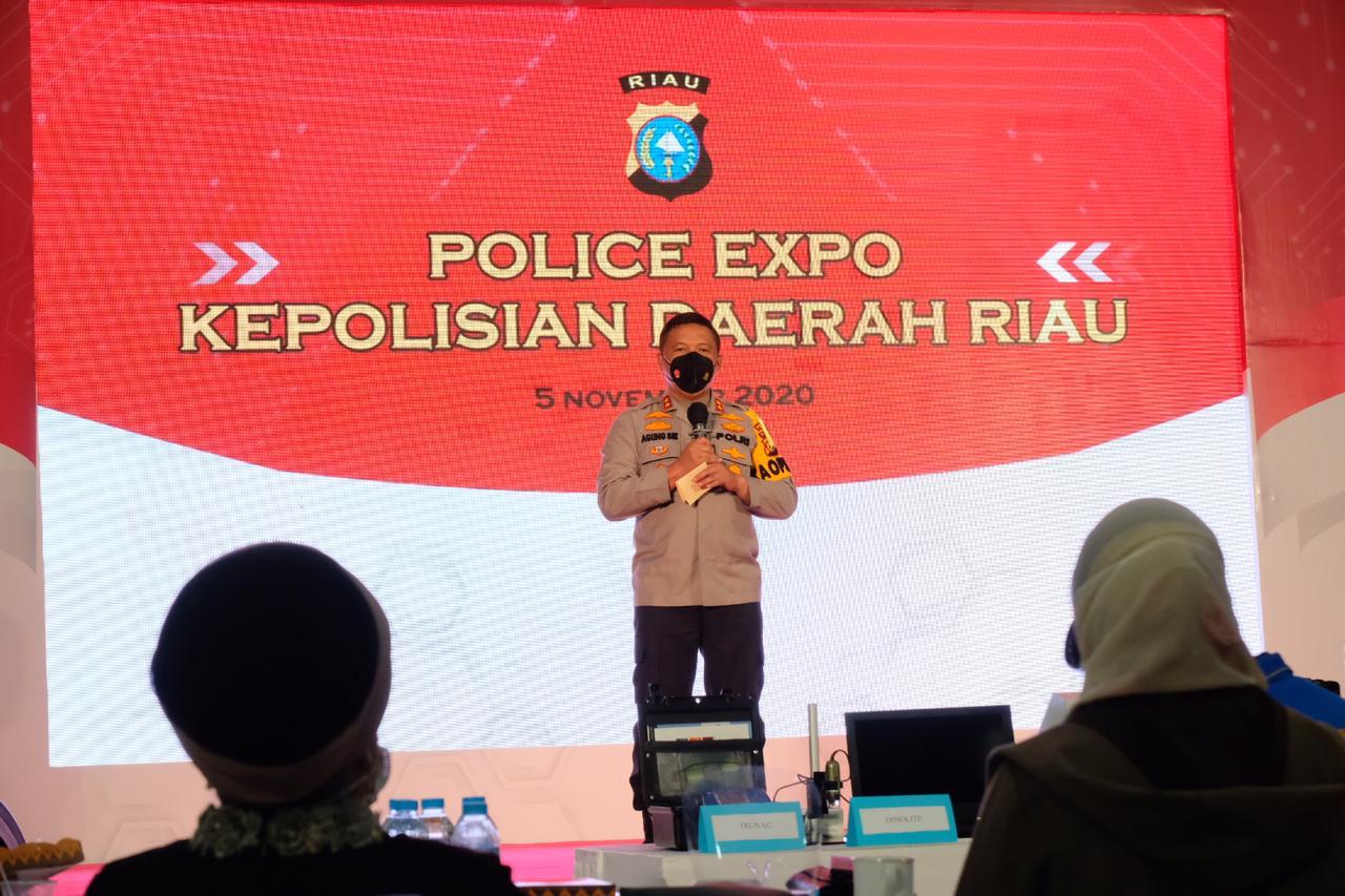 Pekanbaru, ZonaEXpose.com - Bertempat di Mako Sat Brimob Polda Riau di Jalan KH Ahmad Dahlan Pekanbaru pada Kamis (5/11), Polda Riau menggelar Police Expo dengan menampilkan peralatan canggih yang dimiliki oleh Polda Riau dalam mendukung pengungkapan tindak kejahatan.